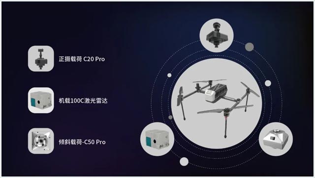 支持搭载正射相机、倾斜相机、双光吊舱